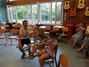 Bevor die Kinder im September mit der Bläserklasse loslegen werden, konnten sich die Kinder beim Informationsnachmittag an den verschiedenen Instrumenten versuchen – was sichtlich Spaß machte J