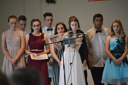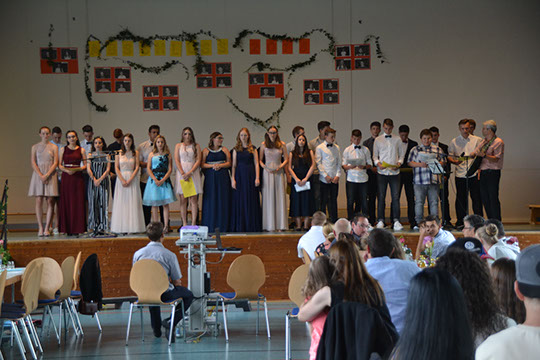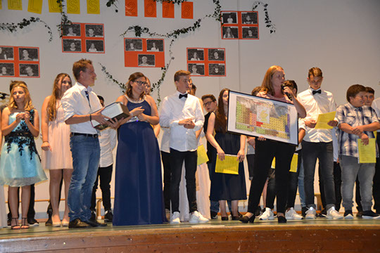 Den besten Werkrealschul-Abschluss mit dem Notendurchschnitt von 1,6 erreichte Lena Skrobanek, das beste Hauptschul-Abschlusszeugnis erhielt Tino Rosenland mit der Durchschnittsnote 1,4. Beide erhielten von der Vertreterin der VR-Bank Heike Kopf einen Gutschein in Höhe von 50€ für ihre tolle Leistung. Denselben Betrag erhielt Marcel Hesse für sein ausgeprägtes Durchhaltevermögen und seine tadellose Einstellung. Den Sozialpreis des Fördervereins überreichte Vorsitzende Angelika Szeibert an Shyla Lutz, die sich als Klassen- und Schülersprecherin besonders für die Gemeinschaft einsetzte. Bereits am Vortag erhielt Lisa Weiberle den Landespreis für herausragende Leistungen im Wahlpflichtfach „Gesundheit und Soziales“ (die BZ berichtete darüber). Schulleiter Rainer Graef betonte, dass die gut funktionierende Klassengemeinschaft besonders hervorzuheben sei: „Menschen, die nicht nur sich selbst, sondern auch die Anderen wahrnehmen, braucht unsere Gesellschaft mehr, denn je.“
