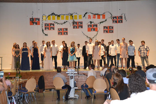 Im Rahmen einer Abschlussfeier in der Kirbachtalhalle feierten 18 Zehntklässler das Erreichen der Mittleren Reife. 8 Klassenkameraden sowie 4 Schüler aus Klasse 9 freuten sich über ihren erfolgreichen Hauptschulabschluss.