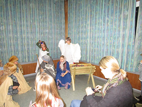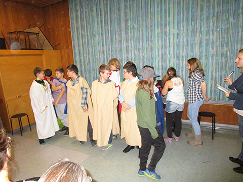 Ein Krippenspiel der etwas anderen Art führte die Klasse 6 kurz vor Weihnachten im Musiksaal der Kirbachschule auf. Unter der Regie ihrer Deutschlehrerin Frau Ongert zeigten die Mädchen und Jungs eine tolle Leistung. Originell: Die Zuschauer saßen auf Hockern in der Mitte des Raumes und drehten sich immer in die Richtung, in der die Akteure gerade spielten. Die Eltern und ihre Lehrerin konnten am Ende stolz darauf sein, dass die Schülerinnen und Schüler ein Einstundenstück so diszipliniert und gekonnt präsentierten. Herzlichen Glückwunsch!