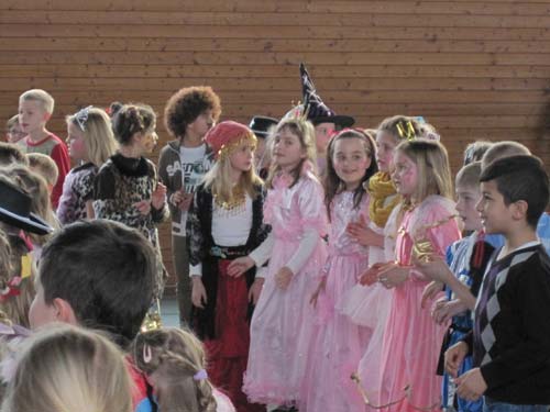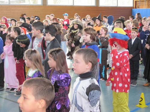 Bereits zum 9. Mal sangen und tanzten die Kinder gemeinsam in der Kirbachtalhalle beim Grundschulfasching. Die Lieder waren zuvor beim Hallenspiel- und Sporttag eingeübt worden, sodass jeder prima mitmachen konnte. Zum "Jubiläum" im Februar 2015 soll es übrigens ein paar besondere Überraschungen geben.