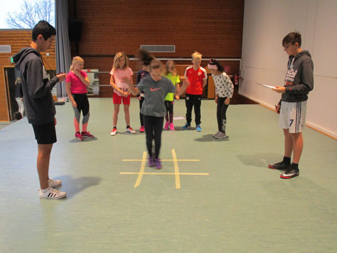 Viel Freude an der Bewegung hatten die Grundschulklassen beim diesjährigen Hallen-Spiel- und Sporttag am Donnerstag, den 31.Januar 2019. Klassenwettspiele, Spiele im Klassenzimmer, Bewegungslieder zur Schulung der Exekutiven Funktionen im Musiksaal, Schulhofspiele, ein Koordinations-Parcours im Bädle für die Klassen 1 und 2 sowie leichtathletische Stationen für die Klassen 3 und 4 mit elektronischer Zeitmessung (Speedy- Cup) standen auf dem Programm. Ein herzliches Dankeschön geht an unsere Schulsportmentoren für die tolle Unterstützung sowie an Sabine Amann und Jonte Fischer von der LG Neckar-Enz, die mit der Lichtschranke unsere Sprint-Talente zu Höchstleistungen motivieren konnten.