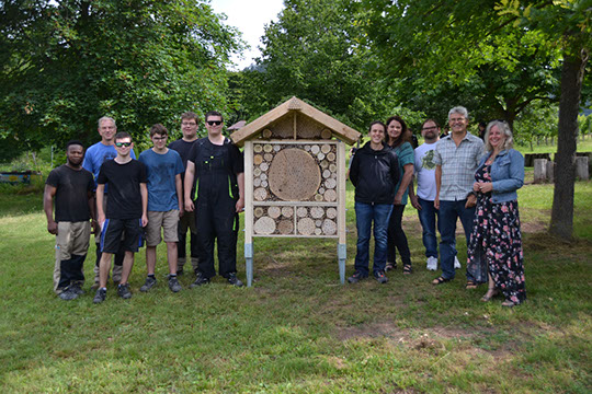 Im Rahmen eines Projekts der Beruflichen Qualifizierung und Rehabilitation der BBQ gGmbH, entstand in den Werkstätten des CJD Vaihingen-Enz ein wunderschönes Insektenhotel. Die Beteiligten suchten einen schönen und würdigen Platz, der nun auf dem Gelände der Kirbachschule gefunden wurde. Wir bedanken uns ganz herzlich bei der Projektleiterin Ute Wenrich und allen anderen Mitwirkenden für diese tolle Spende!