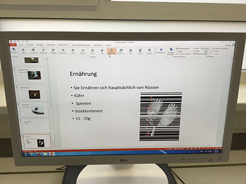 Die Klasse 5 lernte dieser Woche Powerpoint kennen. Herr Stahuber führte die Schülerinnen und Schüler in die Grundkenntnisse ein. Thema der Präsentationen waren Vögel und Säugetiere. Die Schüler durften sich bei den Effekten und Hintergründen kräftig austoben. Am Freitag wurden die Ergebnisse der Klasse präsentiert. Passend zum Thema Vögel testeten die Schüler eine App, mit der Vogelarten bestimmt werden können. In einem Workshop und Film wurde auch auf die Gefahren im Internet, insbesondere Cybermobbing, eingegangen.