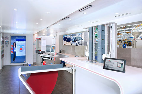 In der unteren Etage gelingt dies mit anschaulichen Experimentierstationen, an denen die Faszination Technik greifbar und erlebbar wird. Die Schülerinnen und Schüler können selber eine CNC-Maschine programmieren und damit ein Werkstück fräsen. Auch wer schon immer mal wissen wollte, wie ein Aufzug gesteuert wird und gerne mit Elektronik-Bausteinen experimentiert, war in diesem Bus genau richtig. Interaktive Aufgabenstellungen und Hintergrundinfos gab es per Tablet.