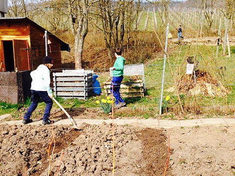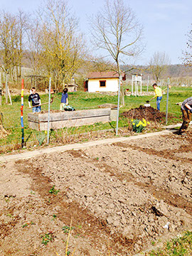 Unser Schulgarten-Team war schon wieder fleißig: Kompost aufbauen, Wege und Beete anlegen, nochmal mit der Fräse durch die Beete gehen, Blumenbeet zum Kleingarten umarbeiten.