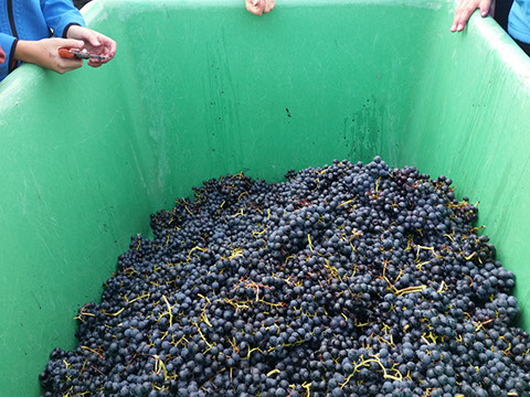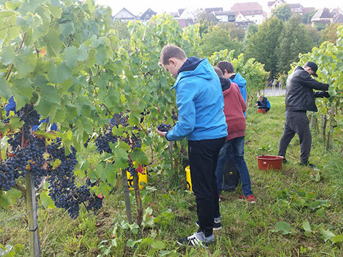 Viele Hände, schnelles Ende: In zwei Stunden schaffte es die Schülergruppe ca. 400kg Trauben von bester Qualität zu ernten. Im März 2018 werden dann ungefähr 300 Weinflaschen Regent von dieser Weinlese abgefüllt sein und anschließend von der Schülerfirma KIS verkauft.