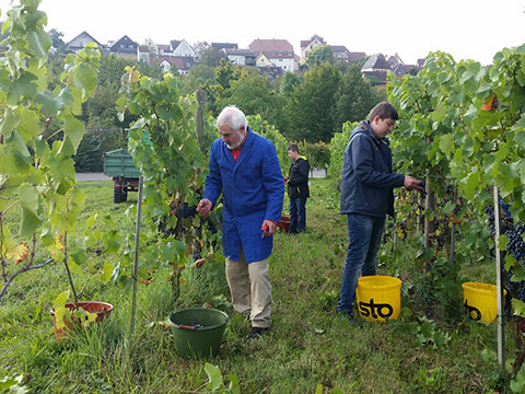 Am 20. September war es mal wieder soweit. Die Schüler der Schülerfirma KIS konnten mit der alljährigen Weinlese beginnen. Nach einem arbeitsreichen Jahr im Schulweinberg wurde bei schönem Herbstwetter die Trauben Regent geerntet. Herr Baumgärtner vom Panoramaweingut, der uns den Wein keltert und ausbaut, hatte uns einen Wagen mit Zuber bereitgestellt.Herr Kurz, ein erfahrener Weingärtner aus Hohenhaslach, zeigte uns die richtige Auswahl der Trauben, dann konnte es losgehen.