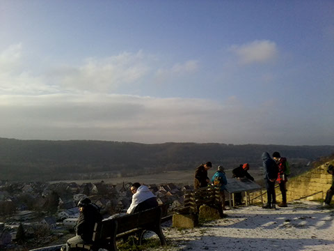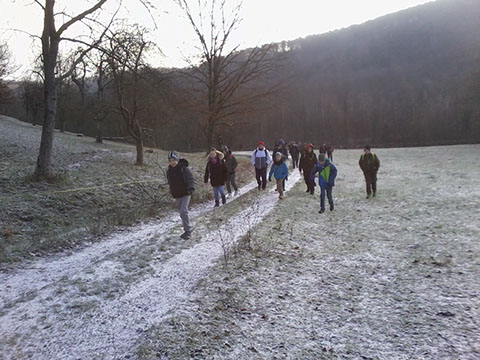 Bei leichtem Schneefall startete die Wandergruppe mit dem staatlich geprüften Wanderführer Rainhold Graefner an der Kirbachschule, passierte eine Stunde später nach abenteuerlichem Abstieg im Schippachtal die Brücke, um in herrlichem Sonnenschein über Streuobstwiesen und durch die Weinberge den Wengertschütz in Ochsenbach zu erreichen. Ein Kompliment geht an die Wandergruppe mit Schüler*innen der Klassen 2 bis 10 für den harmonischen Vormittag.